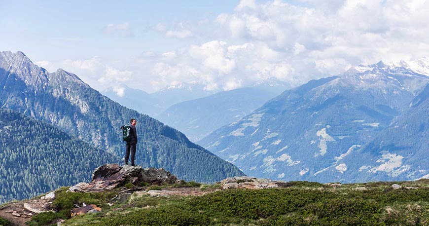 Die Lage des Jägerhofs im Passeiertal ist für Wanderfreunde ideal. Von hier können die Berge des Naturparks Texelgruppe ebenso erkundet werden wie die historischen Waalwege und die angenehm mediterranen Ebenen im Meraner Land. Unzählige Kraftplätze und Aussichtspunkte stehen ganzjährig auf dem Wanderprogramm. Besondere Erlebnisse sind außerdem die Kräuterwanderungen mit Rosi und sportliche Action mit Erwin beim Klettern, Canyoning oder Kanufahren. „Das Passeiertal und das Meraner Land bieten auf kleinstem Raum wirklich für jeden Wanderfreund genau das Richtige – und die meisten Ziele können vom Jägerhof umweltschonend mit öffentlichen Verkehrsmitteln erreicht werden“, erklärt Siegi die entscheidenden Vorzüge eines Wanderurlaubs im Hause Augscheller.